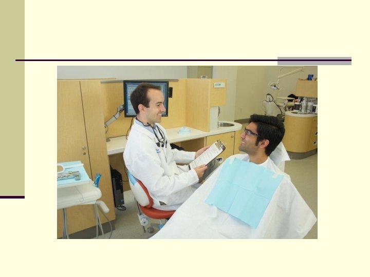 Daily Oral Hygiene Habits n Ask the patient to demonstrate toothbrush and flossing technique so that you have a baseline of the patient’s dexterity and knowledge of their home-care techniques. n Ask about the frequency of the patient’s home-care habits and what the patient uses to maintain their oral health. n This step is critically important in knowing your patient’s understanding and use of dental hygiene instrumentation. n It is critical to do this prior to the intraoral examination so that a baseline of patient home care is obtained, and as the examination is being done, the findings can be related to what was visualized when the patient demonstrated their techniques. Hygiene instruction should follow the completion of the examination.