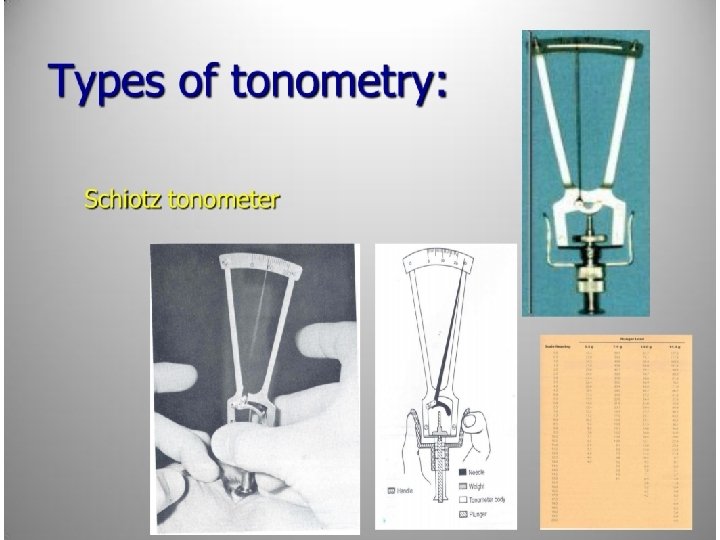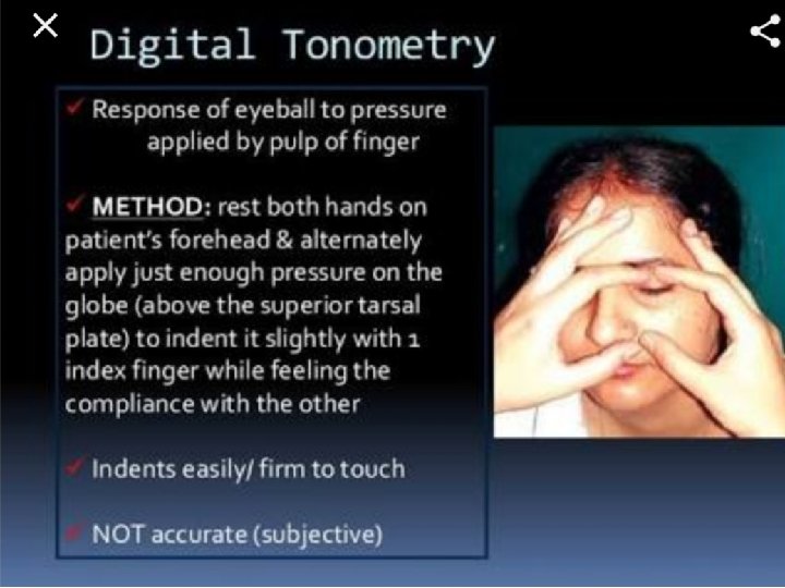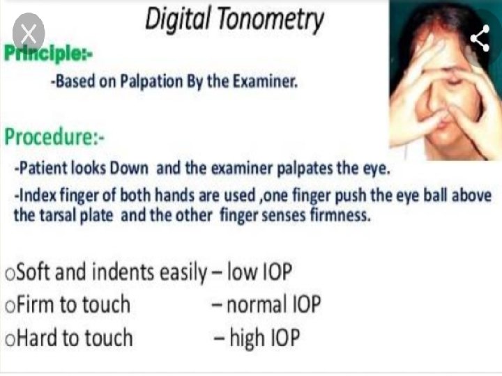 Examination Procedure : A) B) C) D) E) F) G) H) Acuity of vision Colour vision Field of vision Ocular motility and allignment Pupillary reaction Slit lamp examination Intra ocular pressure Ophthalmoscopy