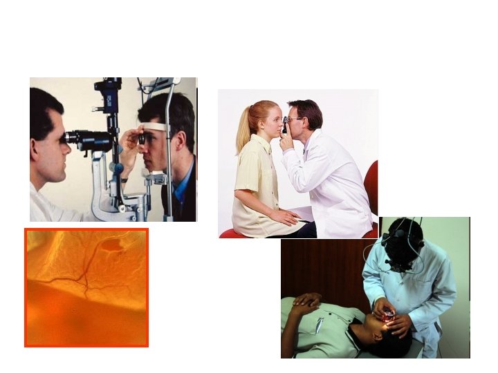 Examination of fundus • Ophthalmoscopy - direct - indirect • Slit lamp biomicrocsopy (high power convex lens, the image is vertically inverted and laterally reversed)