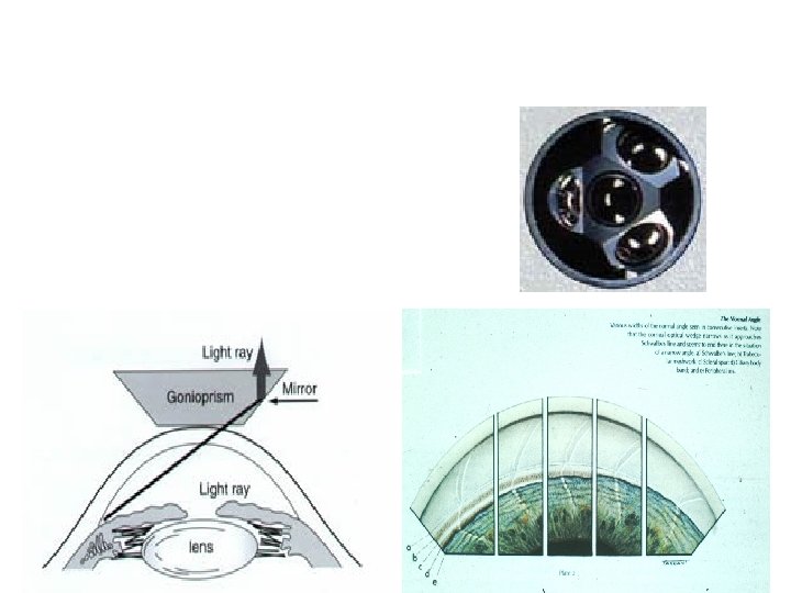 Gonioscopy • Gonio lens ( mirrors) • Angle structures • Fundus examination