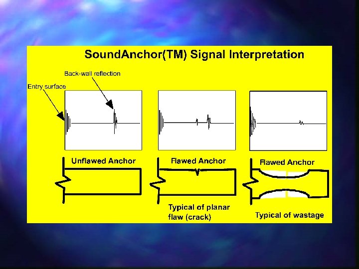 Sound. Anchor(TM) A Nondestructive Examination Technique Patent 6, 311, 565 received Nov 6, 2001 Advantages • After minor initial surface preparation, test is conducted quickly • Non-damaging • More thorough examination • Inherently safe • Easily repeatable • Trending possible • One-tenth of the cost of excavations