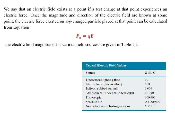 1. 4 The Electric Field forces can act through space, producing an effect even when no physical contact occurs between interacting objects. An electric field is said to exist in the region of space around a charged object—the source charge.