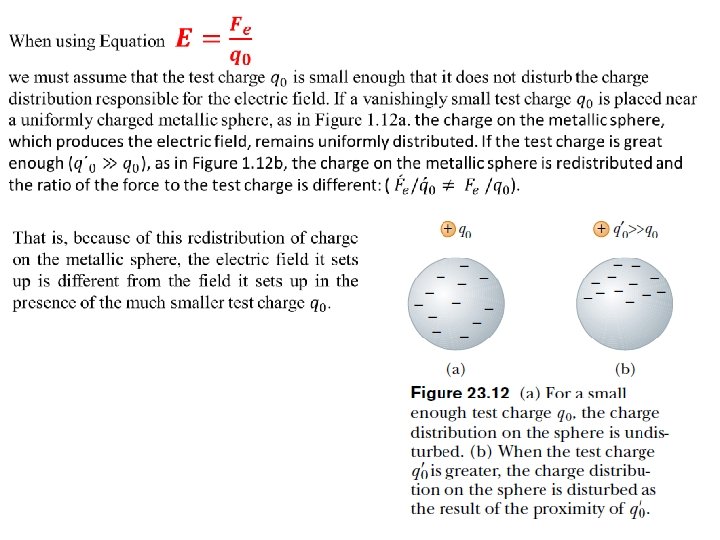 Active Figure 1. 13 A test charge q 0 at point P is a distance r from a point charge q. (a) If q is positive, then the force on the test charge is directed away from q. (b) For the positive source charge, the electric field at P points radially outward from q. (c) If q is negative, then the force on the test charge is directed toward q. (d) For the negative source charge, the electric field at P points radially inward toward q.