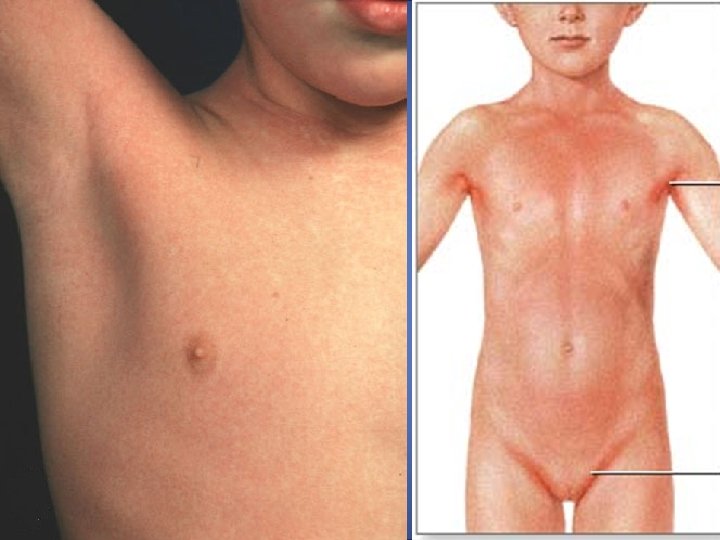 Incubación: 5 -15 días. Periodo de contagio: Desconocido. Signos y síntomas: Fiebre, BEG, a veces pequeñas adenopatías occipitales. Desaparición característica de la fiebre alta y aparición simultanea de la erupción en lactantes y preescolares. Riesgo de convulsiones (por tropismo del virus al SNC). Erupción: - Localización: Tórax y abdomen con afectación moderada de cara y extremidades. - Características: Maculosa o maculopapulosa difusa. - Comienzo y duración: La erupción aparece al 3 - 4 día del comienzo de los síntomas a la vez que desaparece la fiebre. La erupción dura 1 - 2 días.