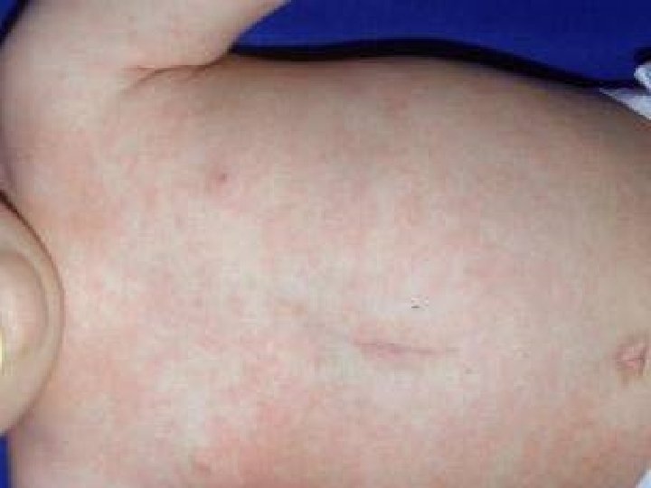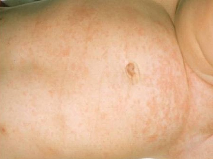 CRITERIOS DIAGNÓSTICOS - Fiebre de aparición brusca de 3 -5 días. - Muy buen estado general. - Desaparición de la fiebre y aparición del exantema. - Exantema en tronco, espalda y cuello
