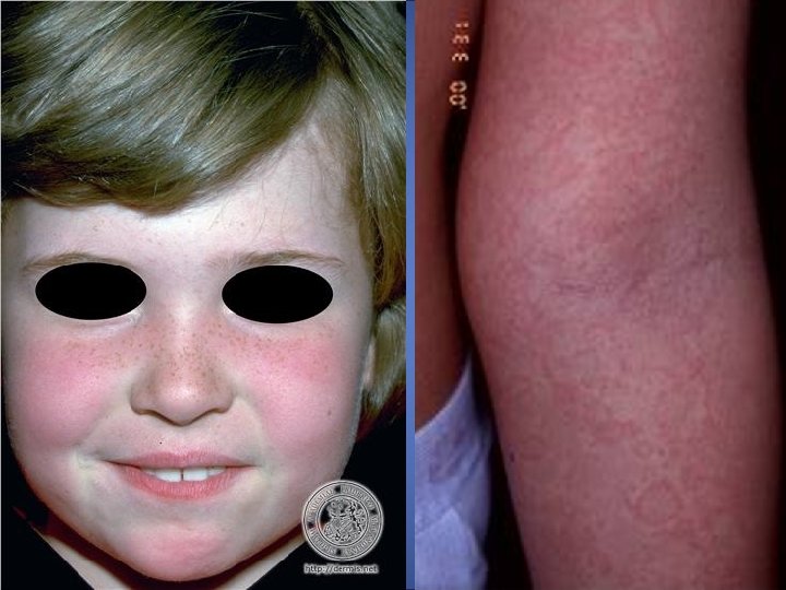 CRITERIOS DIAGNÓSTICOS - Ausencia de pródromos o pródromos leves: Febrícula, malestar general, artralgias. - Placas edemato-eritematosas en mejillas. -Exantema reticular en superficies de extensión de extremidades, tronco y cuello -Rebrotes ante diversas situaciones