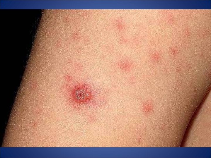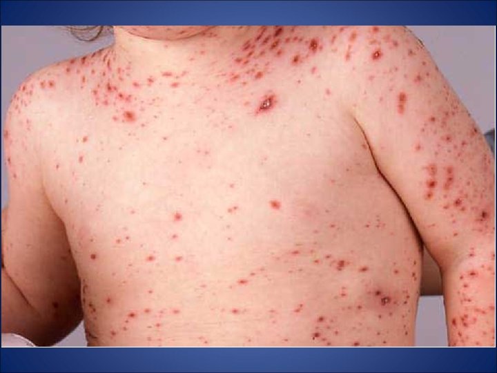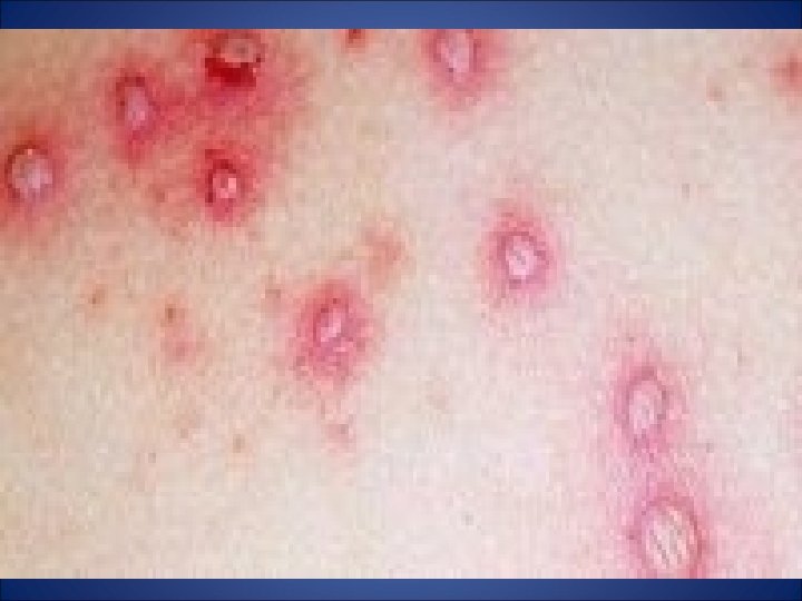 CRITERIOS DIAGNÓSTICOS - Pródromos leves. - Erupción maculo-papulo-vesiculo-pustular muy pruriginosa. - Extensión centrifuga. - Lesiones en distintos estadios.
