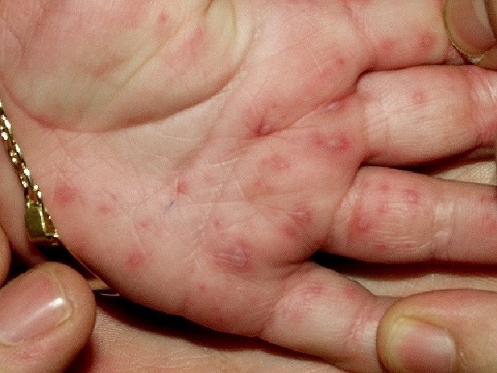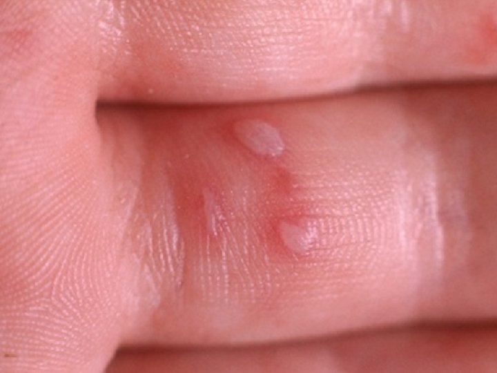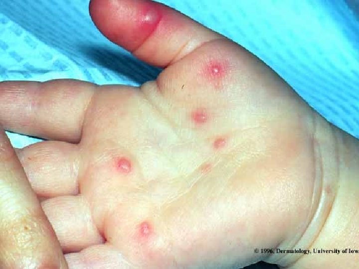 CRITERIOS DIAGNOSTICOS -Catarro leve, malestar, febrícula, dolor de boca y abdominal -Lesiones ulcerativas en boca -Maculo-papulo-vesiculas en manos y pies