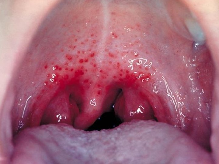 Incubación: 3 – 7 días. Periodo de contagio: desde 3 días antes de aparecer las lesiones hasta 3 -4 días después. Muy contagioso. Signos y síntomas: Pródromos: Fiebre, malestar, dolor de boca, catarro, diarrea, vómitos, adenopatías. Dura 1 -2 días. Erupción: - Localización: las lesiones se inician en la boca y luego aparecen en manos y pies - Características: Lesiones vesiculosas dolorosas, que en boca (5 -10) se ulceran y parecen aftas. En manos y pies aparecen maculas-papulas-pequeñas vesículas. - Comienzo y duración: Las lesiones en boca aparecen a los 2 días del inicio de la fiebre. La fiebre desaparece al 3º-4º día. Las lesiones de la boca se van en 7 días y las de manos y pies pueden durar 10 días.