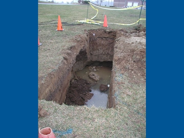 Washington Configuraciones de Hoyo De Prueba De Suelo ¡PRECAUCIÓN! Las fosas de ensayo no se dejarán abiertas durante un período prolongado a menos que estén debidamente barricadas por regulación L&I. Un ejemplo de una fosas de prueba correctamente atrincherado es: Una cerca anaranjada de construcción alrededor de la fosa de prueba asegurada por los postes de metal.