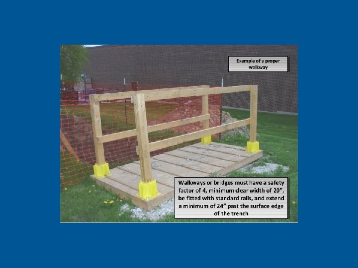 296 -155 -655 – Requisitos Generales de Protección (3) El acceso y salida (a) Rampas Estructurales. (i) Rampas estructurales que son utilizadas únicamente por los empleados como un medio de acceso o salida de las excavaciones deben ser diseñadas por una persona competente. Rampas estructurales utilizadas para el acceso o salida del equipo deben ser diseñados por una persona competente calificada en diseño estructural y deben ser construidos según el diseño. (ii) Rampas y pistas construidas con dos o más miembros estructurales deben tener los miembros estructurales conectados juntos para prevenir el desplazamiento. .