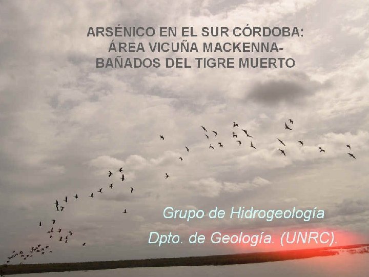 Consideraciones Finales • La consideración de la evolución geoquímica temporal experimentada en el área, además de la espacial, reviste relevante importancia para desarrollar estudios epidemiológicos en el sector. • La situación del abastecimiento está siendo mitigada. Sin embargo aún resta población en áreas urbanas y toda la población rural que continúa expuesta a aguas que no presentan aptitud para su utilización.