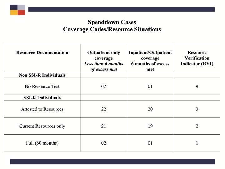 Excess Income • Definition • Who Can and Cannot Participate • Types of Coverage • Meeting an Excess with Bills • Sub Systems § Principal Provider § Pay-In