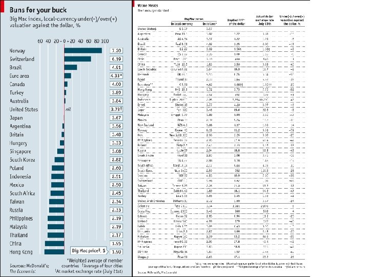 A 1 country 2 US 3 Argentina 4 formulas B C D E F under (-) actual valued In local in US implied exchange against dollar currency dollars PPP rate 3. 54 11. 5 3. 30 3. 25 b 3/e 3 b 3/c 2 3. 49 -7% (d 3 e 3)/e 3