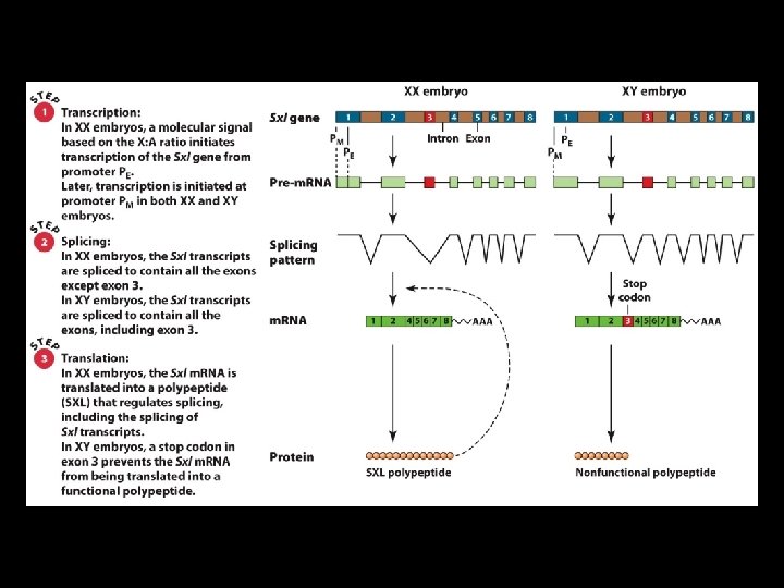 SXL makes a functional protein in XX zygotes SXL makes a non-functional protein in XY zygotes