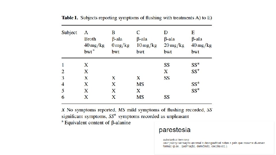 (2015) • 4 a 6 g/dia (2 a 4 semanas) fracionados ao dia (0, 8 a 1, 5 g/dose) • < fadiga neuromuscular • Melhora no desempenho de exercícios com duração de 1 a 4 minutos • Ausência de efeitos ergogênicos em exercícios com duração de até 60 segundos • Faltam mais pesquisas para verificar o efeito ergogênico da β - alanina em exercícios de até 25 minutos