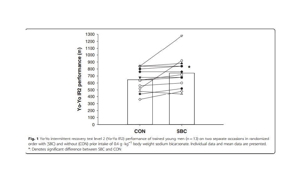 2013 • 300 mg/Kg • 1 a 2 horas antes de iniciar o exercício • Aumenta capacidade de tamponamento • Exercícios com duração de 1 a 7 minutos • Exercícios intermitentes