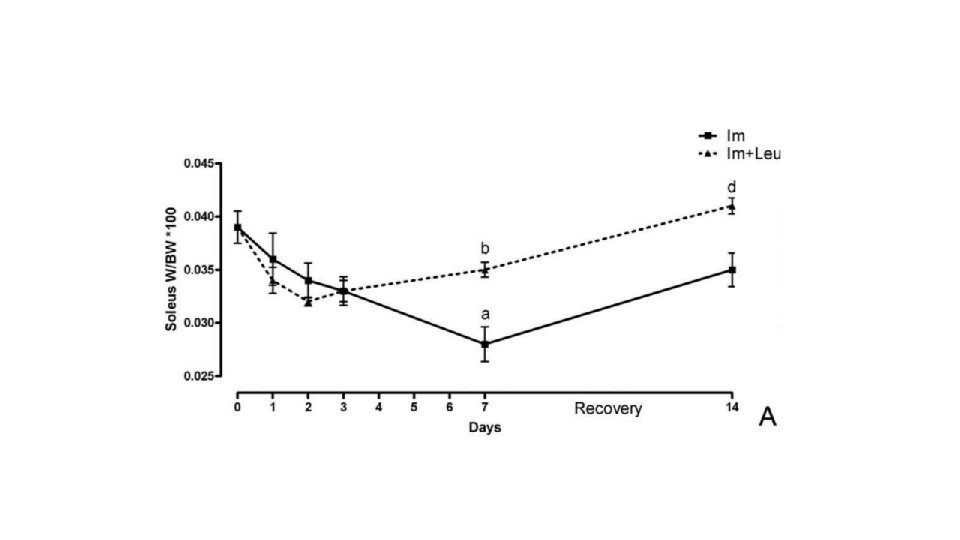 (2010) • Ratos (n= 70) • 3 grupos • Controle • Membros inferiores imobilizados + leucina (2, 7 g/Kg) (3 dias antes da imobilização + 7 dias de recuperação (17 dias) • Biópsia muscular • Biologia molecular (genética)