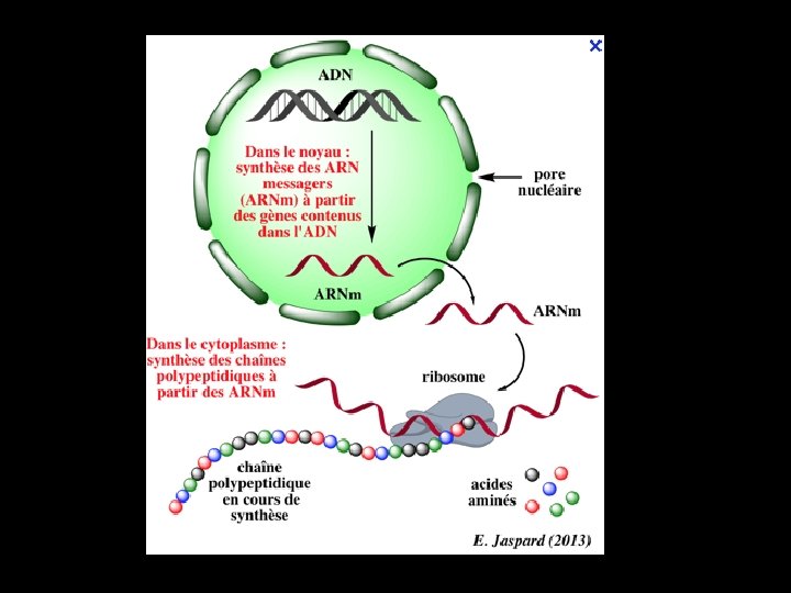 l'ARN messager est ensuite TRADUIT, dans le cytoplasme par l'action des ribosomes