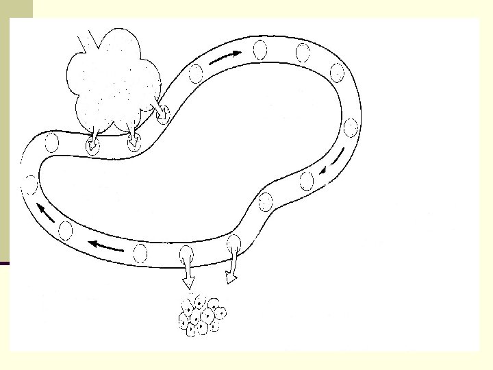The Circulatory System n Blood circulates to every cell in the body. n The following diagram shows the main blood vessels and explains how blood circulates to all parts of the body.