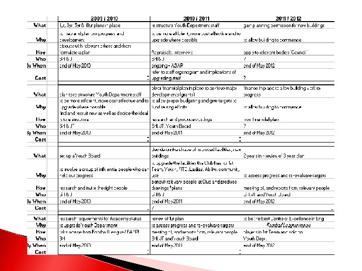 Strategic Plan: FITC 5 Year Development Plan Category Plan: FITC Programme Delivery and Business Management Action Plan Objective To become the principal provider for all aspects of grass routes football 2020 Vision Strategic Action Plan Done Action Steps Description Action Point 1 Confirm programme viability and consolidate present schedules Jamie Vittles Jill Aldridge Frank Sealey Aug 2010 Action Point 2 Expand delivery centres base into middle and east Devon Jamie Vittles Scott Walker Danny Harris Aug 2011 Action Point 3 Establish sustainable support and office management systems Jamie Vittles Jill Aldridge Frank Sealey Aug 2011 Action Point 4 Create effective sales and marketing base Julian Tagg JV/ Board Dec 2012 Action Point 5 Increase revenues by 25% year on year Jamie Vittles Board/Staff ongoing Responsible Supported by Date