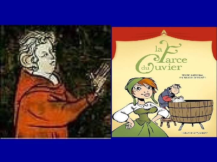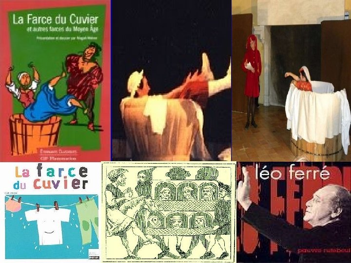Farce du Cuvier • anonyme mais probablement d'origine picarde • l’histoire d’une femme qui fait passer un pacte à son mari en lui faisant signer un relais sur lequel toutes les tâches ménagères qu’il doit effectuées sont inscrites