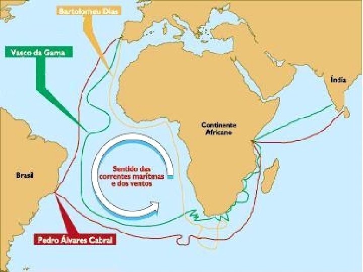 Mas era preciso enfrentar muitas dificuldades. . . • Oceanos desconhecidos • Oceano Atlântico – Mar Tenebroso • Terras desconhecidas – relatos • Muçulmanos • Novas tecnologias de navegação