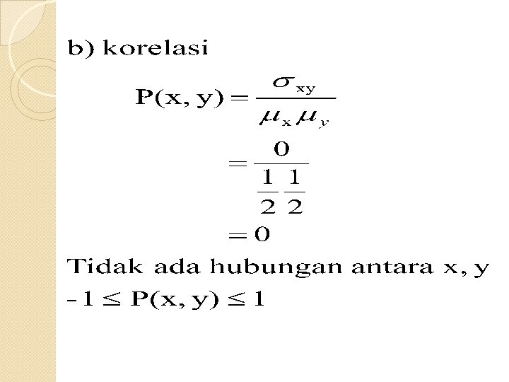 Ekspektasi Fungsi Gabungan Apabila X dan Y merupakan variabel acak dari fungsi distribusi gabungan f(x, y), nilai ekspektasi matematiknya dapat diketahui.