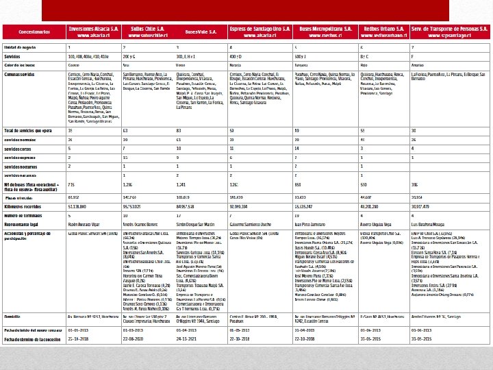 Empresas concesionarias de los servicios de transporte