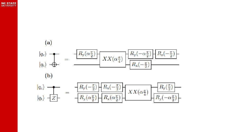 Toffoli • Uses five 2 -qubit gates for Ion trap • Uses ten 2 -qubit gates for IBM-Q