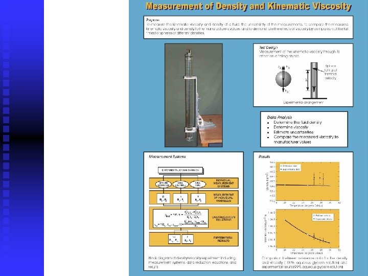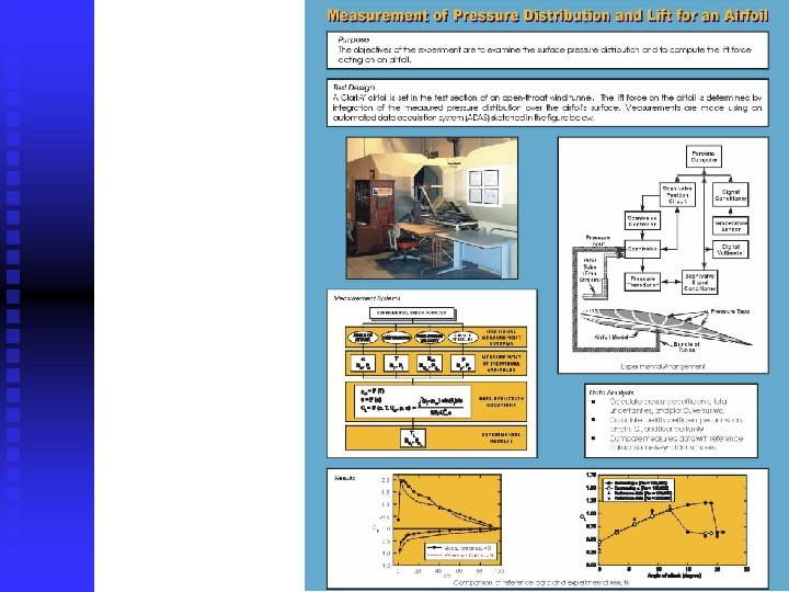 Measurement Systems n Procedures: u u u u Adoption of international standard EFD procedures (e. g. , wind-tunnel AIAA standard S-071 -1995) Use concomitant methods for measurement of the main variables Adopt a comprehensive scheme for controlling the MS operation and environmental conditions Establish chronological sequence for MS operation (data acquisition, reduction, storage) Establish appropriate number of test replications and density for measured data points to fulfill EFD and UA requirements Adopt a random sequence for the data acquisition Set appropriate test scheme to counteract MS noise (e. g. , time between replications longer than the period of variation in the extraneous variables), interference, drift in facility and instrument operation