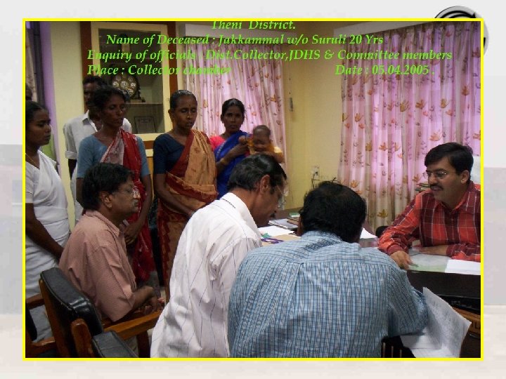 Community based Maternal death Review & Facility based Maternal Death Audit by Collector • District collectors conduct the meeting once in a month • All Maternal deaths occurred during previous month are reviewed • All the service providers including the private service providers, district health managers and the relatives of the deceased participate in the verbal autopsy meeting • Findings of the verbal autopsy format discussed in the meeting • All the contributory factors for each maternal death are analysed • Common factors are identified and informed to state level for policy changes • Relatives narrate the events leading to the death