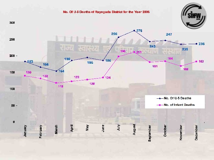 Child Births and Deaths - 2006 • Total Deliveries – 21, 591 o Institutional Deliveries 3491 o Delivery by Skilled Person (ANM) - 4007 o Home Deliveries 14093 • Total Live Births • Total Infant Deaths • Total under-five deaths 19, 256 1, 900 2, 563 IMR contributes to 74% of U-5 deaths