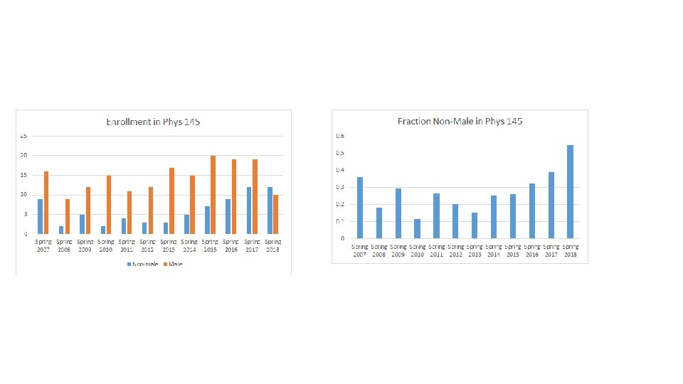 Experiments in Support of Diversity • Over the past few years, we have tried a set of strategies to recruit and retain a more diverse set of students • We wish to present a sample of these strategies as a set of experiments that (may) have dramatically altered our current student body • These strategies include: • Inclusive Pedagogy: Active Learning and Blended Classrooms • High-Impact Practices: Low- or no-barrier engagement opportunities • Department Climate and Culture: co-curricular conversations and initiatives