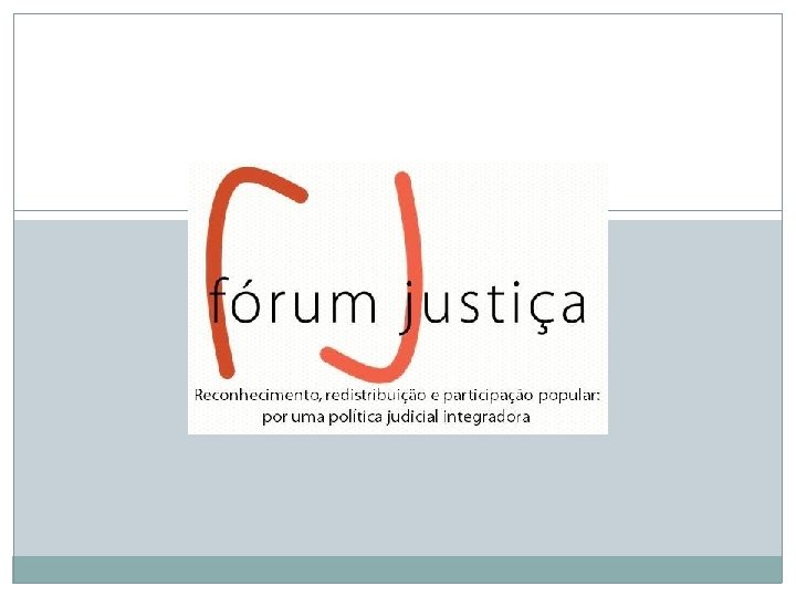RESUMO DA PRIMEIRA REUNIÃO -FÓRUM JUSTIÇA – GT GÊNERO – 04/11/11. Idéia de Sistema de Justiça ligada exclusivamente ao Poder Judiciário, passando, tb pela Defensoria Pública, advogados e Ministério Público; . Necessidade de que a sociedade tenha educação em direitos x noção de um Poder Judiciário fechado, distante e incompreensível àqueles que dele mais necessitam; . O conservadorismo do Judiciário que reproduz o sexismo, as desigualdades da sociedade, mantendo o status quo de preconceito contra a mulher e suas questões; . A pseudo democratização e o autoritarismo dos espaços, uma vez que projetos são realizados e implantados sem que os seus destinatários sejam ouvidos; . A necessidade de se investir na formação de novos profissionais do direito para que sejam mais sensíveis à realidade; . A necessidade de atitudes que possibilitem sejamos ouvidos. Fazer barulho.