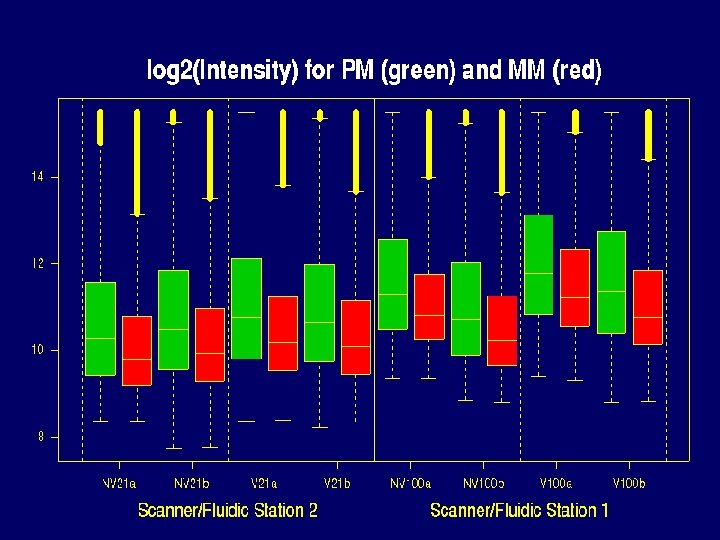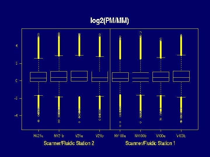 Properties of Data that make defining expression hard • • There can be saturation log 2(PM / MM) and PM-MM are noisy MM >> PM for many probes PMs of the same probe vary about 5 times less from chip to chip than from probe to probe within the same probe set.