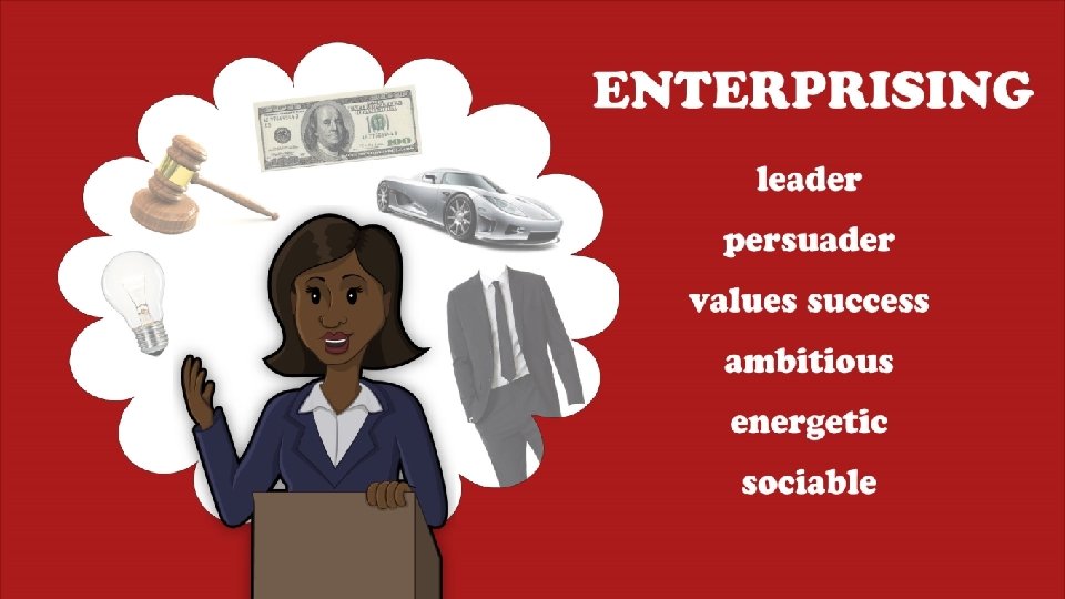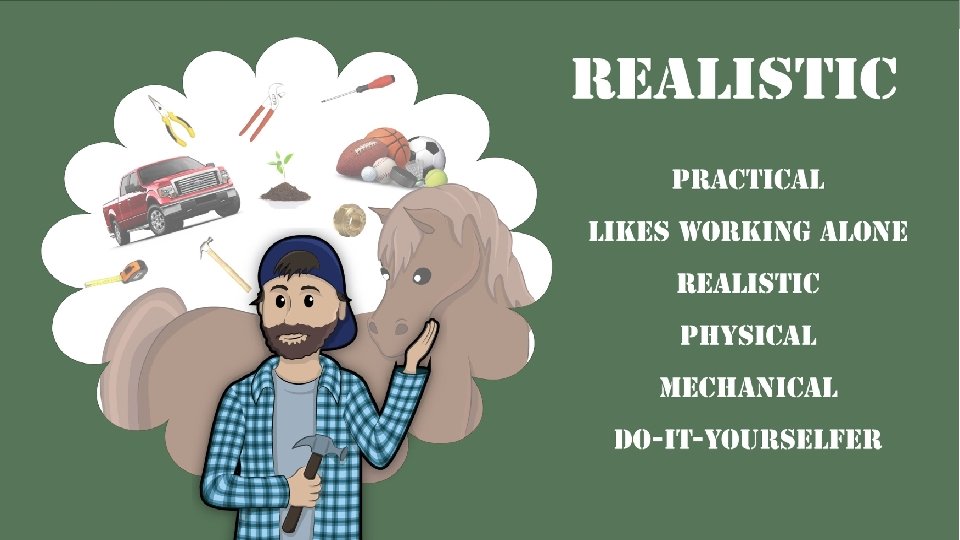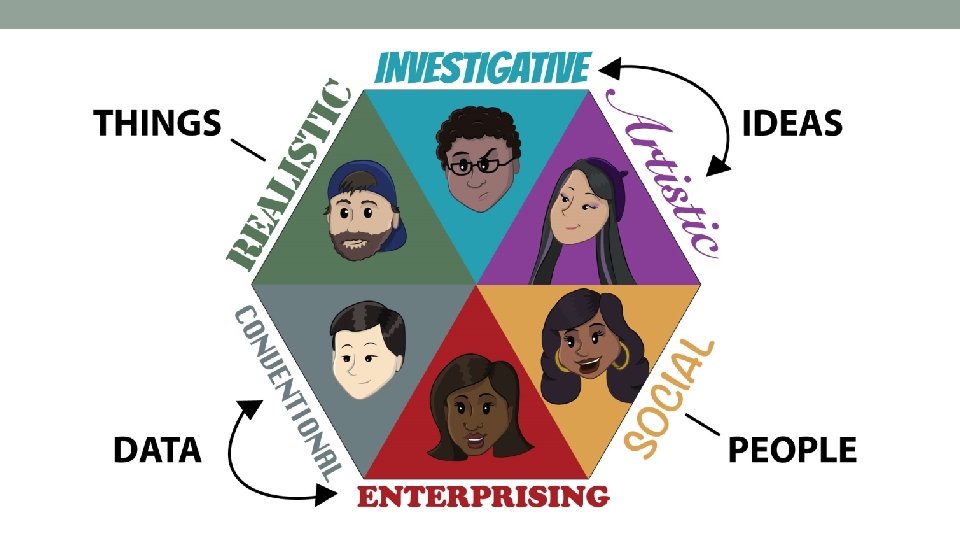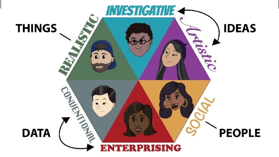 Holland Theory • Person-Environment Fit • 6 Area of Career Interest • Realistic • Investigative • Artistic • Social • Enterprising • Conventional • Understanding a Holland Code (1 st, 2 nd, 3 rd areas of interest)