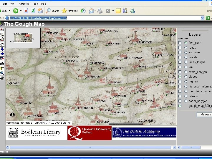 Exploring medieval Britain: the Gough Map, the map library and the research community Nick Millea Map Librarian Bodleian Library University of Oxford United Kingdom Groupe des Cartothécaires de LIBER 16 th Conference Modern Map Use in Education Vrije Universitiet, Amsterdam 2 July 2008