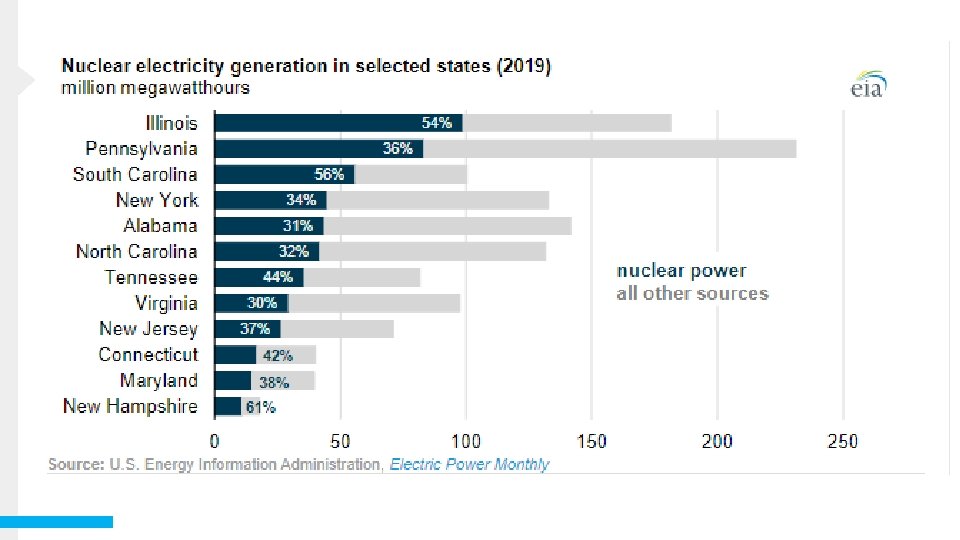 U. S. Electricity Production, 2016 Biomass Wind Hydropower Petroleum 0. 6% Nuclear power plants have supplied about 20% of annual U. S. electricity generation since 1990. 1. 5% Solar 0. 9% Geothermal 0. 4% 5. 6% 6. 4% Natural Gas 34. 0% Nuclear 19. 9% Data: EIA Coal 30. 6% *Total does not equal 100% due to independent rounding. Data: Energy Information Administration Exploring Nuclear Energy 2018 ©The NEED Project