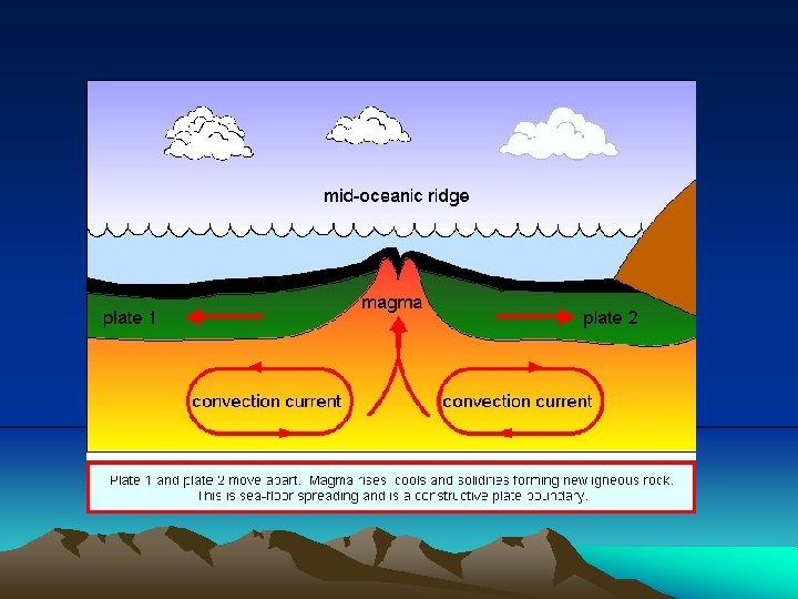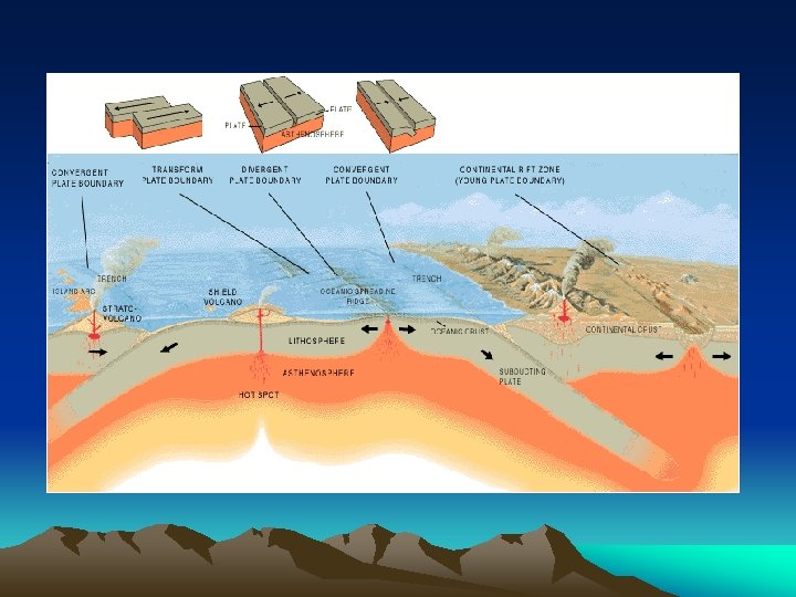 Convection • Convection (heat) currents – carry heat from the hot inner mantle to the cooler outer mantle. • The mantle gets warmer with depth • top of the mantle is ~ 1, 600° F (870° C) • bottom of the mantle is ~4, 000 -6, 700° F (2, 200 -3, 700° C) • The mantle contains most of the mass of the Earth