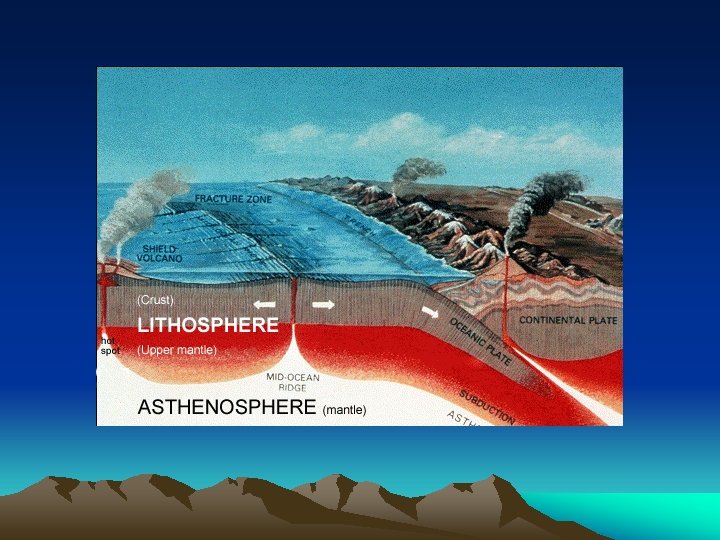 Lithosphere = ‘rock sphere’ Crust and upper rigid part of Mantle Asthenosphere = ‘weak sphere’ Upper part of Mantle
