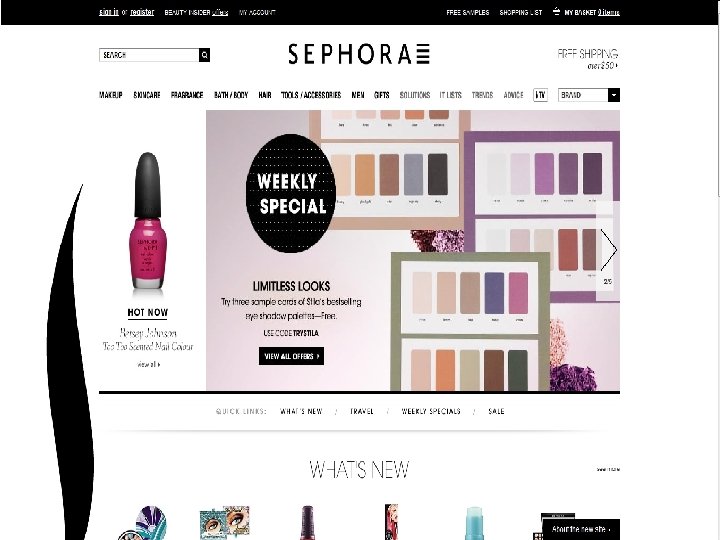 Online Activity 1. View the Sephora Web site. What makes the site successful? sephora 2. Select a site with a retail presence that you’ve shopped at before. Does the site convey a familiarity similar to the store? If so, describe. If not, what could they do?