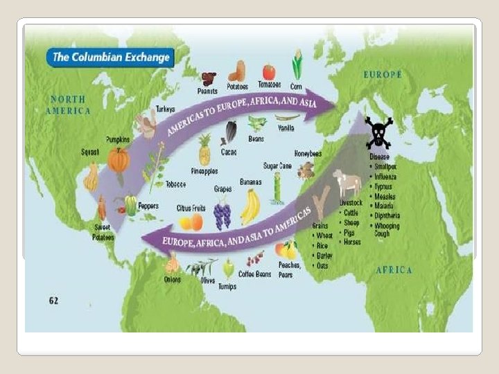 Colombian Exchange- transfer of people, plants, animals, ideas and diseases back and forth across the Atlantic Ocean Created for ECONOMIC reasons