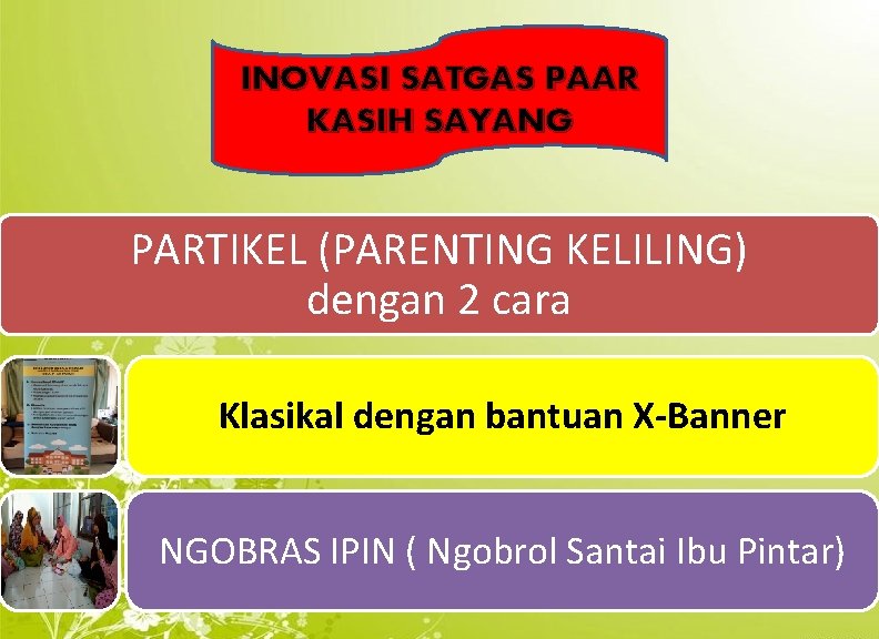 INOVASI SATGAS PAAR KASIH SAYANG PARTIKEL (PARENTING KELILING) dengan 2 cara Klasikal dengan bantuan X-Banner NGOBRAS IPIN ( Ngobrol Santai Ibu Pintar)