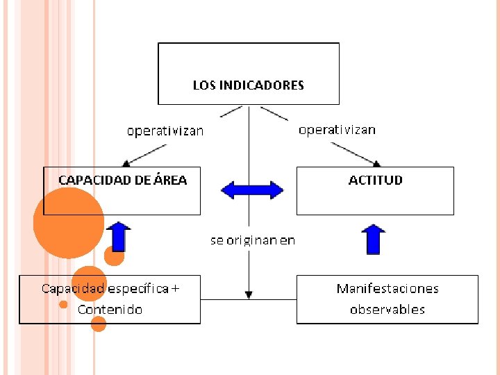 Los indicadores son enunciados que describen señales o manifestaciones que evidencian con claridad los aprendizajes de los estudiantes respecto a una capacidad o actitud. En el caso de capacidades de área, los indicadores se originan en la articulación entre las capacidades específicas y los contenidos básicos; mientras que en el caso de las actitudes, los indicadores son las manifestaciones observables que las evidencian.