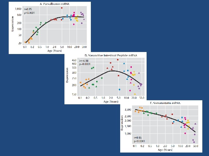 Resultaten (1) Verandering in expressie van interneuron marker m. RNA’s gedurende ontwikkeling geïdentificeerd door microarray: Toename in expressie gedurende postnatale leven