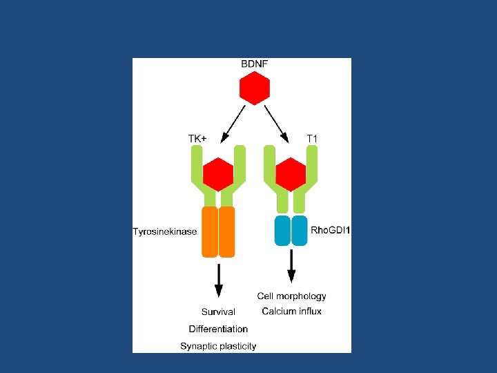 Discussie (5) Ad 3: BDNF de zijn receptor (thyroninkinase Tr. KB) zijn gereduceerd in SC. BDNF stimuleert de expressie van CCK, NPY and SST. Mogelijk ook voor GAD en parvalbumin.