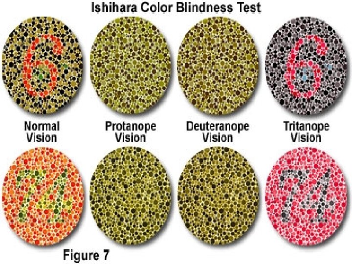 Physiology of Color Blindness • Defective Cone Cells which detect color • Shift the wavelengths of light so the signal sent to the brain is the wrong color. • L, M and S wavelengths (Long, Medium and Short) • Mixture of abnormalities with cones (missing…) Most Common- M Cone