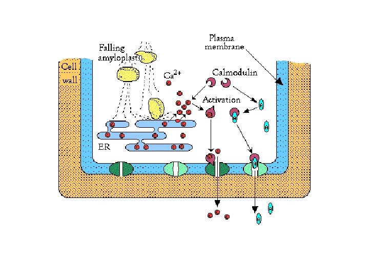 More Gravitropism • Calcium also plays a role in gravitropism calcium movements are mediated by the calcium binding protein calmodulin - calcium moves to upper surfaces of shoot cells before the shoot actually curves upward and calcium moves to bottom surfaces of root cells before the root actually curves downward