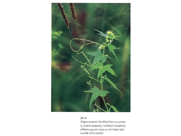 Thigmotropism • Thigmotropism is response to touch or contact with a solid object - this is most commonly seen in tendrils, modified leaves or stems depending on the species - the tendrils wrap around any object they come in contact with and so enable the plant to cling and climb - the response can be rapid, a tendril can wrap around a support one or more times in less than an hour
